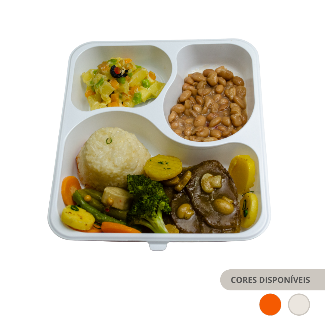 Marmitex de Plástico Descartável com 3 Divisões e Tampa